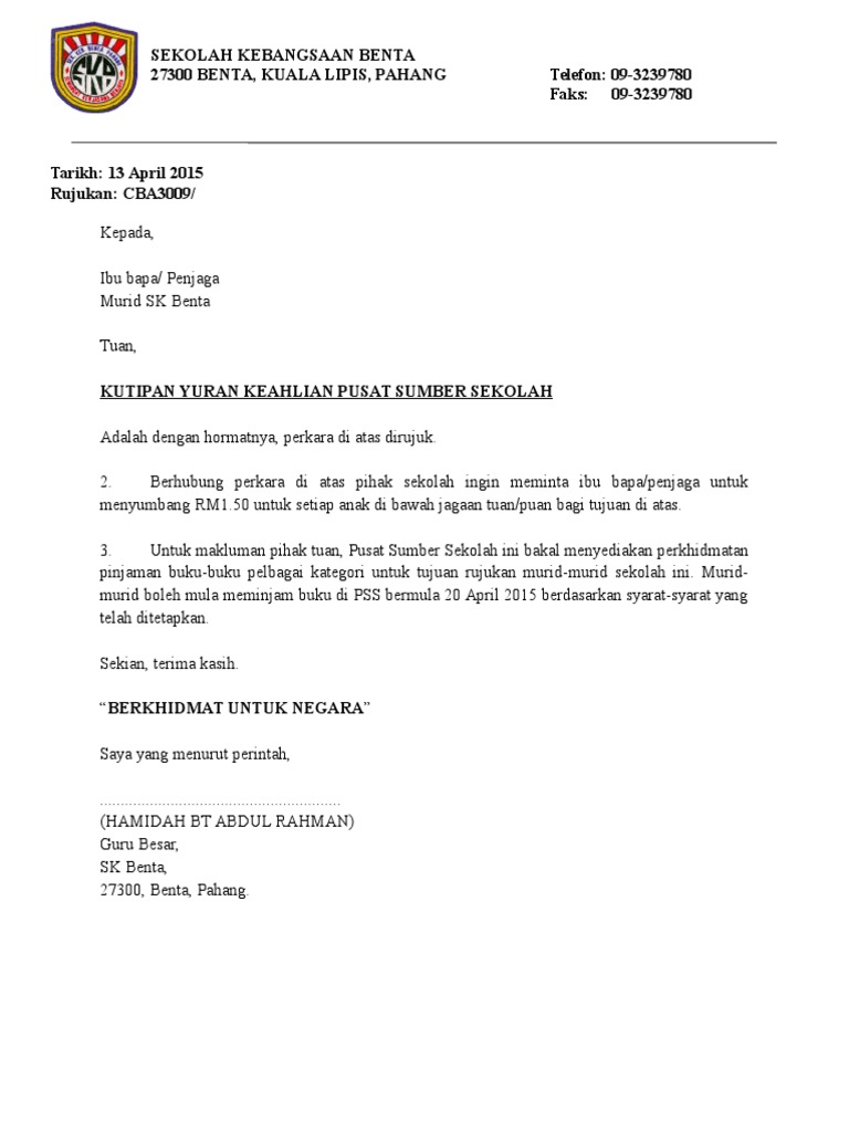 Contoh Surat Resmi Sekolah Sudah menjadi suatu kewajaran kalau sebuah sekolah mengeluarkan surat. Pencen nanti ingat nak mai kerja jaga tandaeh kot. Makluman kelas tambahan murid murid tahun 6 sk.